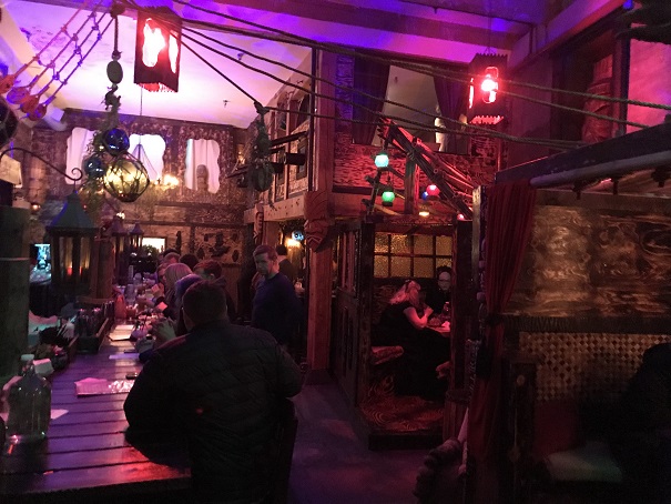 Oooo. The place did have the “wow” factor. The quasi-pirate-themed bar had a distinctively “Pirates of the Caribbean” feel to it. I went right after opening and the place was already filling up.