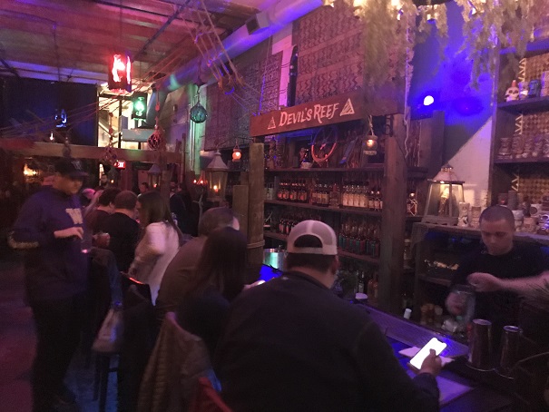 I decided to start off at the newest tiki bar in Tacoma, Devil’s Reef. It was a little hard to find (there was no name over the door), but I really wanted to find it based on it’s great rating on Critiki (9.2) and because it was the latest from the owner of Tacoma’s other, much heralded tiki bar, the Tacoma Cabana.