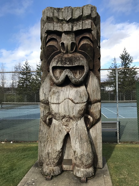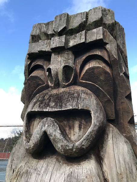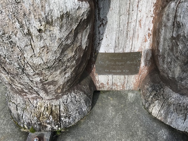 But there’s really nothing to see, just a large carved tiki, a plaque from the family that donated it and a hard-to-read inscription from the carver (?) at the base of the tiki. That’s it.