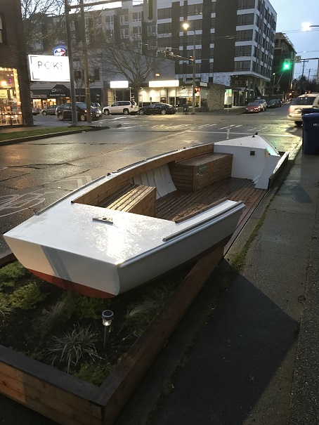 It was an interesting experience…but, as I said, more of a restaurant than a tiki bar. Oh well, I tried it. (And both the drink and chowder were good.) As an added bonus, there was a cool little waiting area just outside and down from the eatery. It was shaped like a boat. Ha! Loved it.