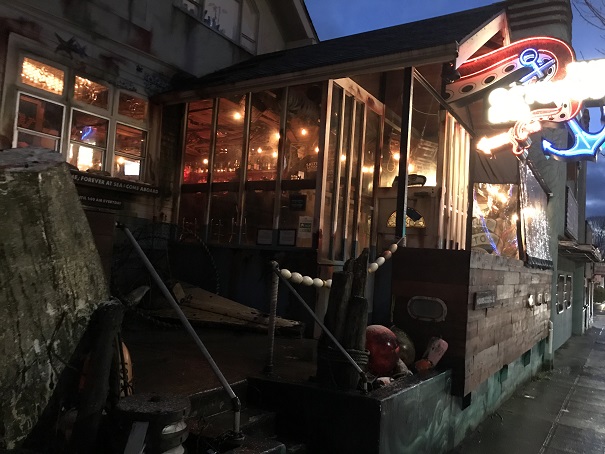 This isn’t a tiki bar. I just happened to spot it driving down Wallingford Avenue (just down a bit and across from Archie McPhee’s). It’s name and nautical-looking theme had me wondering if it could possibly be an undiscovered tiki in disguise? Hmm. After the NO BONES BEACH CLUB, I decided one last night cap wouldn’t be such a bad idea and I could walk to my hotel afterwards (which was NOT such a good idea. UGH!)