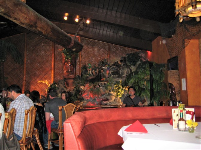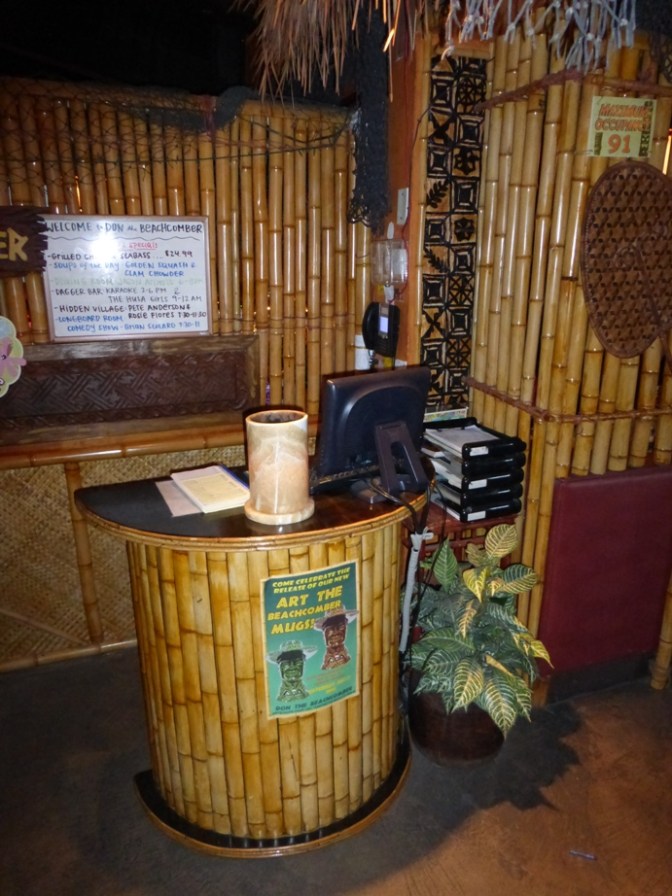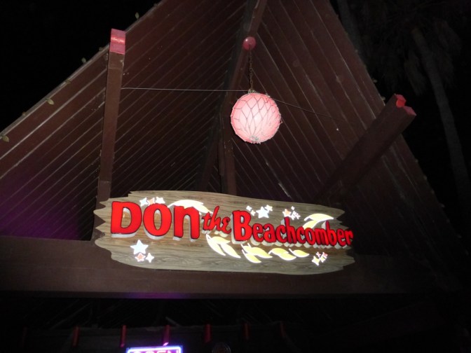 It is with a heavy heart that I bid farewell to Don the Beachcomber in Huntington Beach. I only got to visit the place once–about four years ago. I always meant to go back and get better pictures (which is why I delayed writing about it for so long. My photos are pretty AWFUL. My delay in posting anything since its closure was due to my being unable–until now–to find those old bad photos). There were several occasions where I almost got there, but didn’t. Another time, I thought. But that time never came–and now Don’s is closed. Forever. Here then, bad as they are, are the photos taken that lone night at Don’s…