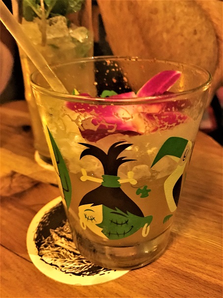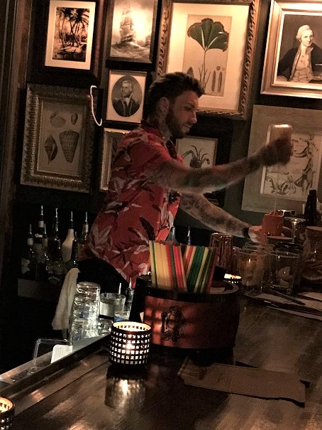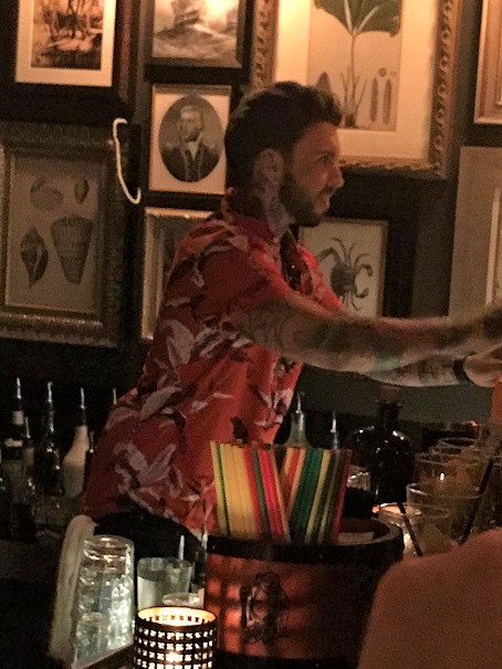 Our bartender that night was a bit of an attraction. Not only was he constantly busy, whipping up cocktails or doing prep work, he was also covered with tattoos.