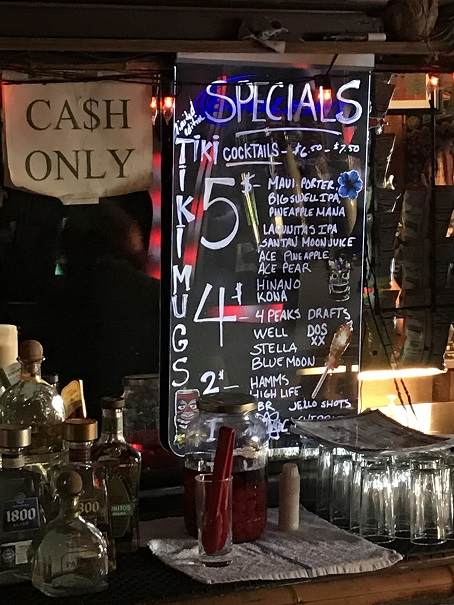 Sure, the place has seen better days. But that is part of its charm. The sign out in front was vintage and cool. The exterior decor, a mix of wooden planks and thatch, reminded me of an ideal shack on a beach that housed a fabulous tiki bar that only the cool kids knew about.