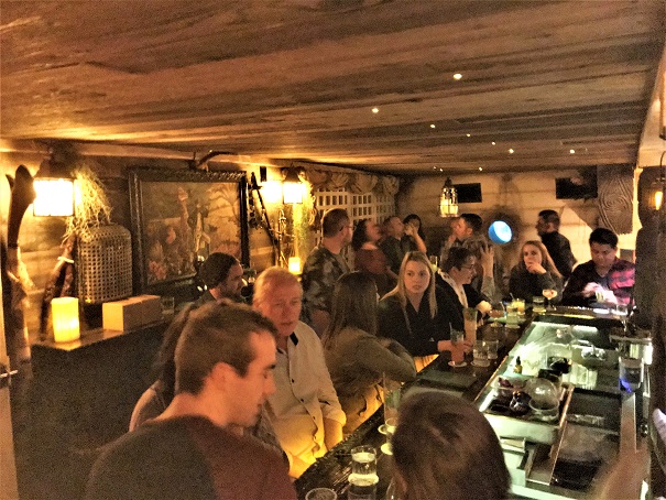 The planking on the walls and ceiling do add a sense of being on board a ship. The decor though, is on the light side. There is a portrait at one end of the bar (Captain Cook?) and smaller framed pictures at the other end of the bar. However, there really isn’t much to see outside of the bar area.