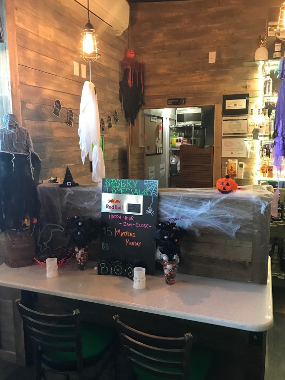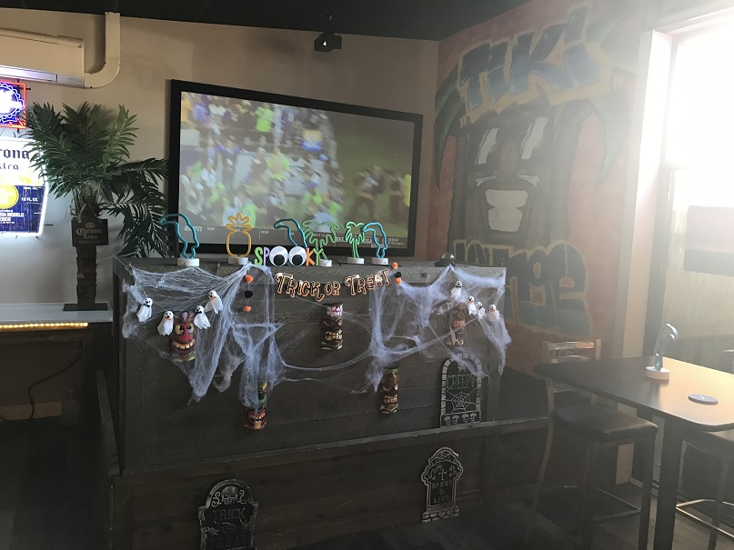 Halloween was just days away, so Halloween decor was fairly heavy near the bar. In fact, there seemed to be more Halloween accents than tiki. Hmm.