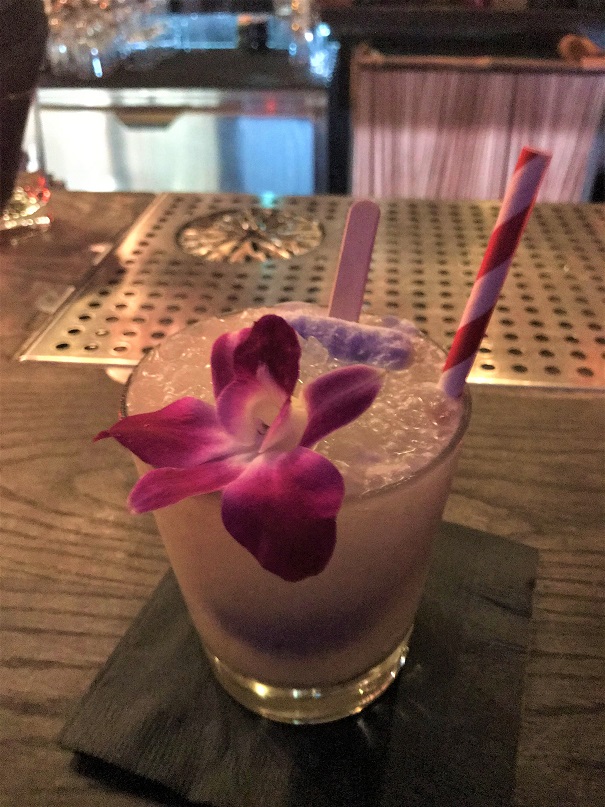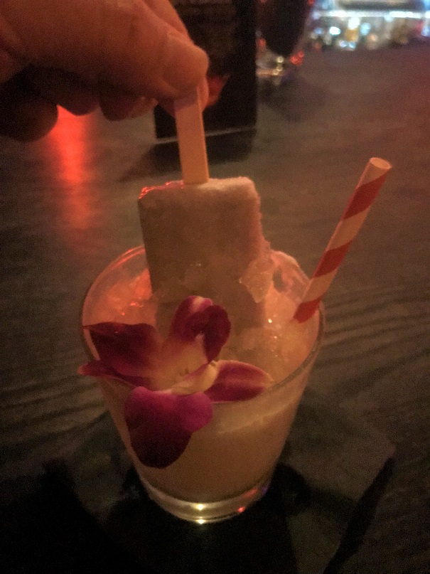 The Coco Pandan arrived and…oh my stars! The drink came complete with a creamy homemade coconut popsicle that, as it melts, adds to the flavor of the cocktail. Amazing.