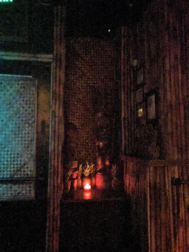 Run by the folks who created Pagan Idol (and a personal fave non-tiki speakeasy Bourbon & Branch) and named after a long-gone tiki palace that was in Oakland, I knew that this place already had a credible pedigree behind it. I was eager to go. But as I made my way into San Francisco’s Tenderloin District where the bar is, I was a bit wigged out. Though it was only about 5:20 pm as I exited the BART station on Powell Street. I headed down Cyril Magnin and then up Ellis Street. Despite the early hour, it was just starting to get dark and the homeless were setting up camp for the evening all along the sidewalk. As bad as I felt for their plight, I was also nervous for myself. Here I was, an out-of-shape middle-aged guy out alone. Maybe this was a bad idea? As I made my way to Jones Street and started walking towards the bar, I became aware that the area reeked of urine. Gawd. I almost turned back. But then I spied Zombie Village. It was so nondescript but had a definite (yet subtle) tiki vibe. If you didn’t know what it was, you might pass on by.