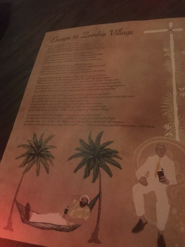 Though it opened 11 months ago, it was only recently I got to visit Zombie Village…and all I can say is OMG! This place is a modern tiki masterpiece.