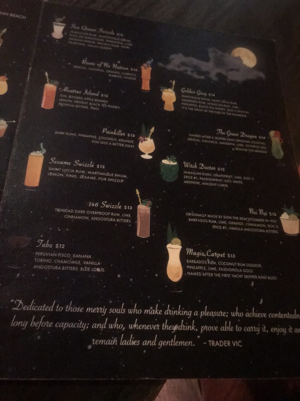 It had been a magical evening. The staff was friendly. The drinks were tasty and the bar itself was jaw-droppingly beautiful. I knew I would be impressed by this place, but I had no idea that it would zoom to the top o’ my list of favorite tiki bars of all time, possibly even nabbing the number 1 spot? It could very well be. I will definitely have to make a return visit or two to make sure. But I can say that this place is hands down my favorite tiki bar in San Francisco.