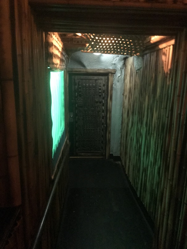As it turned out, the fantastic and friendly bartender, Sam, who had been helping me was also the bar manager. He recognized that I was not just some guy in off of the street; that I was a bona fide tiki enthusiast. He offered to show me around. With my Disco Banana in hand, he led me to a staircase to the closed off upper level of the bar. I knew that section was there–and had been keenly aware that it was closed off when I walked in. I had been wondering HOW I would get up there during my visit (I had to see it, right?). I never dreamed I’d get a personal tour…
