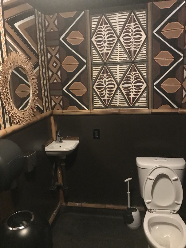 My Disco Banana was gone. My bladder was full. I had asked Sam what his favorite drink on the menu was. He said he was partial to the bar’s take on the classic Zombie cocktail, the Jamaican Zombie. Sold! I told him I would take one, but I had to excuse myself to the, uh… Big Kahuna room first. My “tiki” needed to take a leaky. He directed me down a hall to where the bathrooms are.