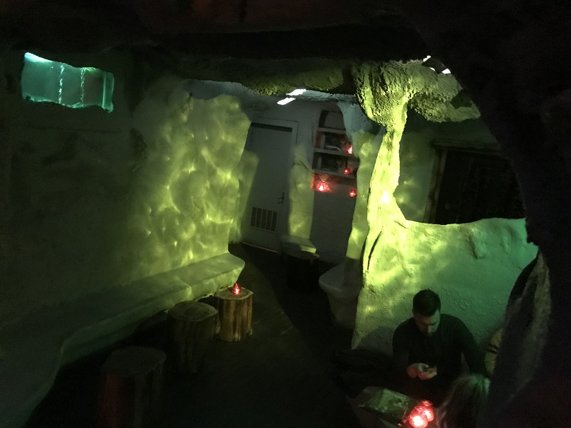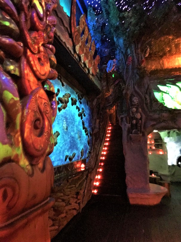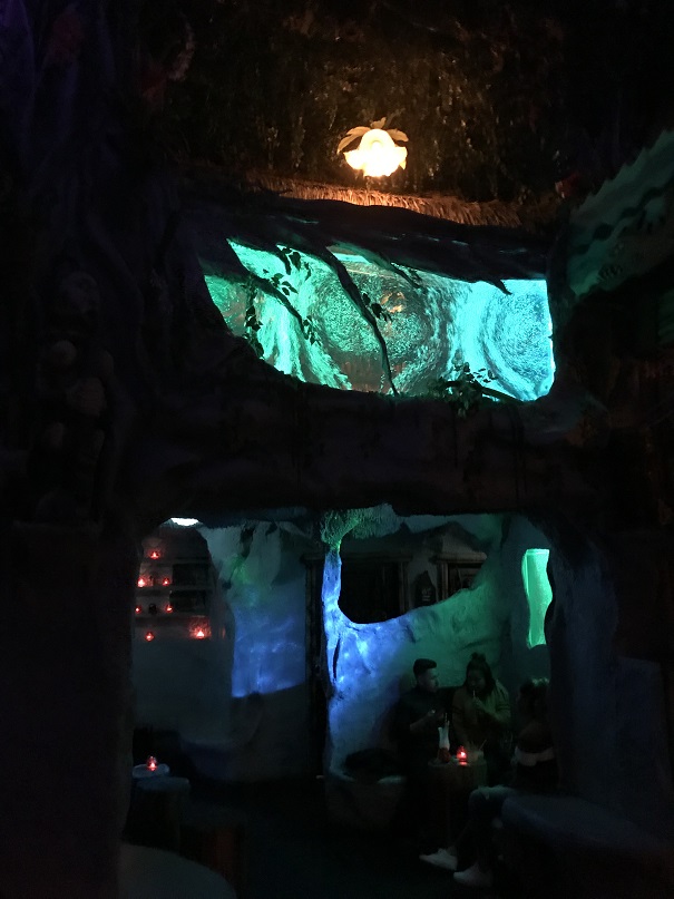 On my way back, I snapped some shots of the cave-like grotto seating area near the main bar, just below the bar on the upper level.