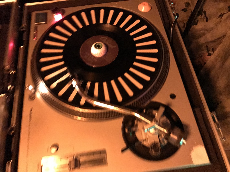 The DJ was spinning old, vinyl 45s. I was so impressed. I thought that, up until that point, I had been hearing a cool play list of vintage instrumental mood music from some streaming site or possibly a CD. It had been the DJ the whole time. His name is Neil (Neal?), but he goes by the name Hi-Tone when he DJs. I was very impressed by his choice of music, the quality of the records (not scratched up but very new sounding) and the fact that someone so young was so in tune with such older music. Wow! Zombie Village has a rare find in him.