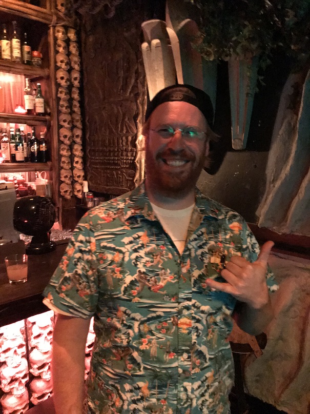 My Fantasma Amistoso was soon empty. How did that happen? Oh well, four drinks was two more than I planned on. But before cashing out with yet another friendly bartender named Jeff, I needed to inquire about tiki mugs. Jeff and Sydney showed me two mugs that the bar used to have—but were currently sold out of. The one on the right was the first mug, but it had long been out of production. The taller mug on the left was the 2nd mug the bar had released, but only 200 had been produced and it was also gone. Sam was within ear shot and he told me he thought he could get me one of the newer mugs. He disappeared and then soon returned with a box numbered 188. I, of course, bought it. Jeff seemed amazed, saying that they only offered those remaining few to VIPs. A VIP is the last thing I am, but I certainly felt like a VIP that night. I had had such a wonderful time thus far thanks to Sam, Sydney, Neil and Jeff and the incredible surroundings around me.