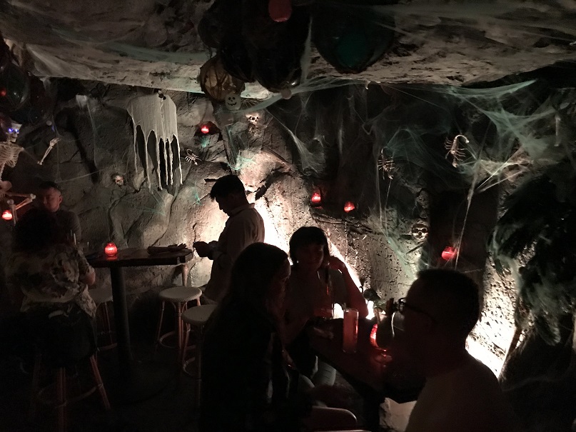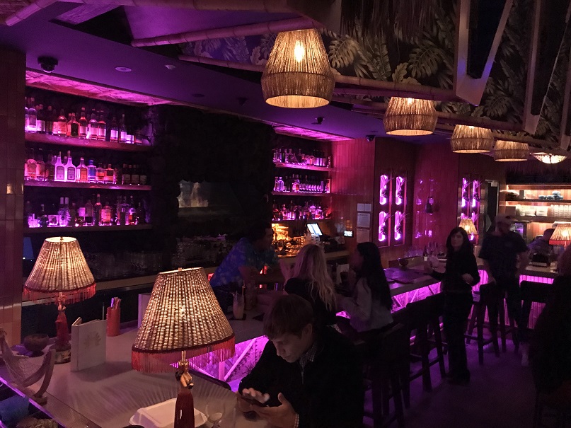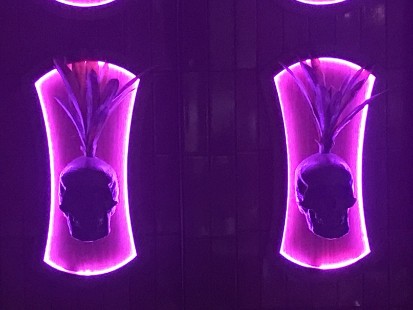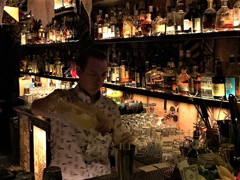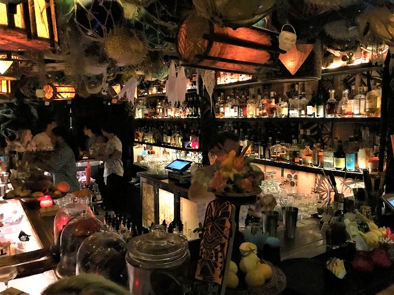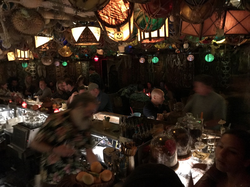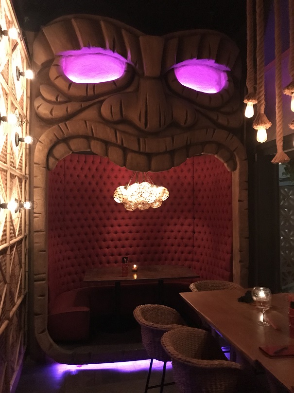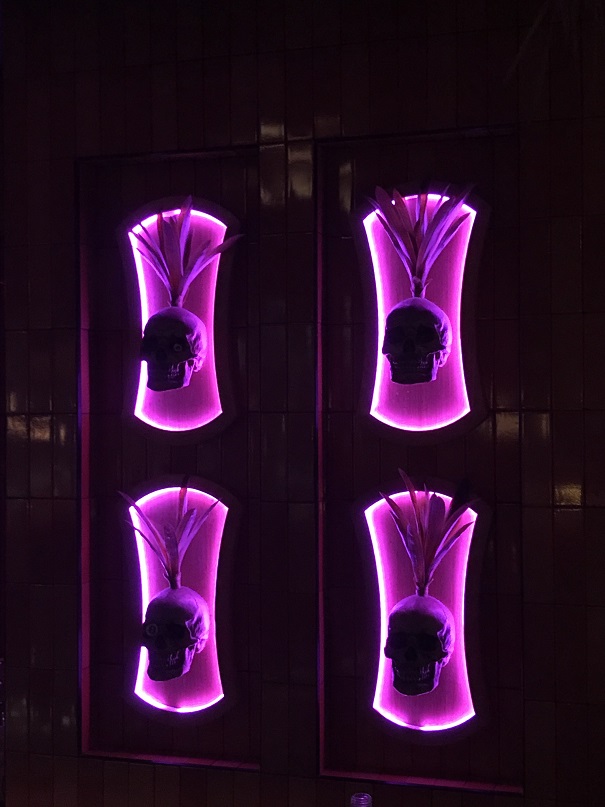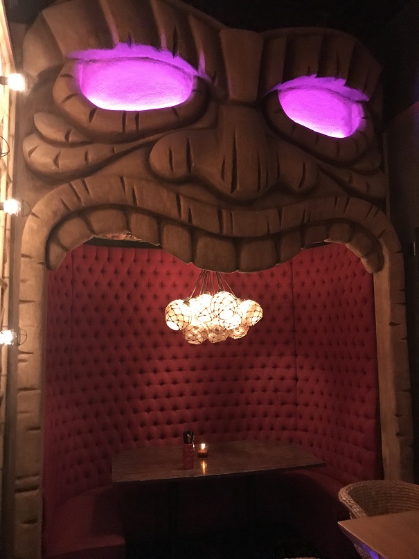 Thank goodness we had reservations as the place was crowded (on a Monday night? Yowza!). Directly behind the hostess table in Craft & Commerce is the spooky cave-like, skull-lined entrance to False Idol. Beyond that, there is an incredible tiki bar.