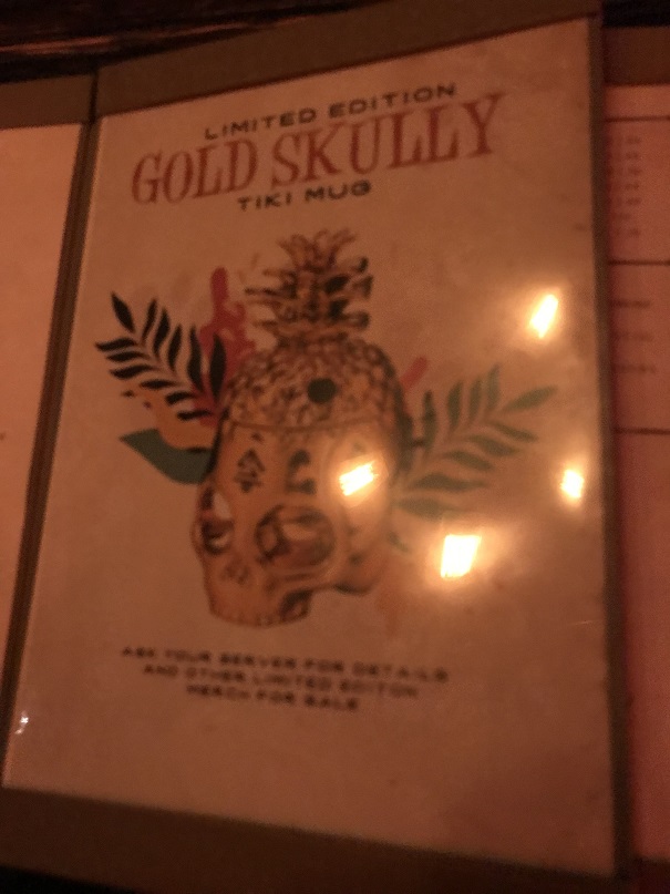 They even had tiki mugs for sale. The Gold Skully Mug would have been incredible…but it was $100. My friend Jenn had already gifted me with an Aku Aku Lapu Punch Bowl the year before. My choices were three below; the Benzart Mug, the Hula Mug, or the Palm Mug. I’m sure I must have gotten one, but at this point 6 months later and with the mug tucked away until I can make my tiki room (if that ever happens), I don’t recall which one I got.