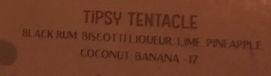 Sucker that I am for a gimmick, I was utterly thrilled with my little banana octopus. The drink was tasty, also.