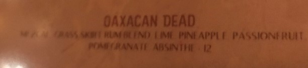 For cocktails, I started off with a Tipsy Tentacle. Erich had the cleverly named Oaxacan Dead.