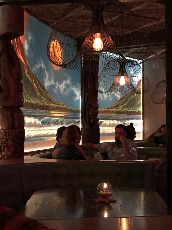 Although the place is legendary, it is decidedly tiki lite. Aside from the actual structure itself, there is very little Polynesian décor to be seen or found. Oh, there were a few pieces in the entryway and along the walls near the hostess desk, but that is about it.