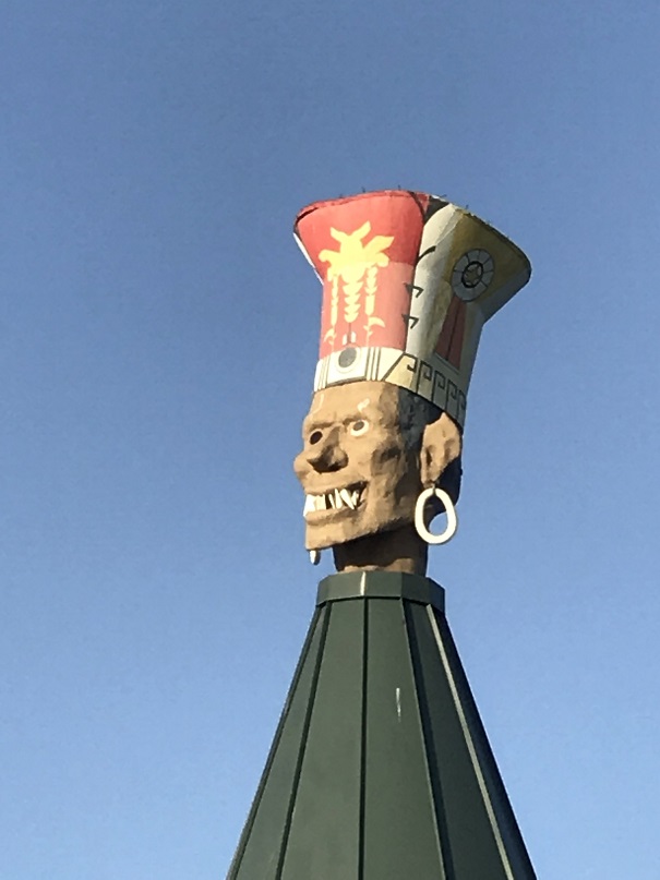 We gave one last wave to the Goof on the Roof (His one eye now glowing red in the darkness), and that was the end of our tiki travels in San Diego.