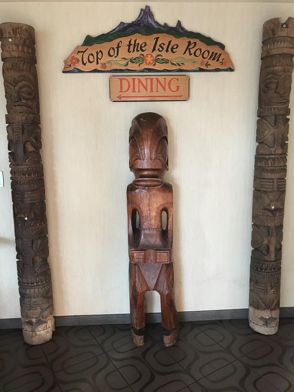 As you approach the restaurant, the famed Goof on the Roof becomes visible as does the the carved Mr. Bali Hai at the entrance.
