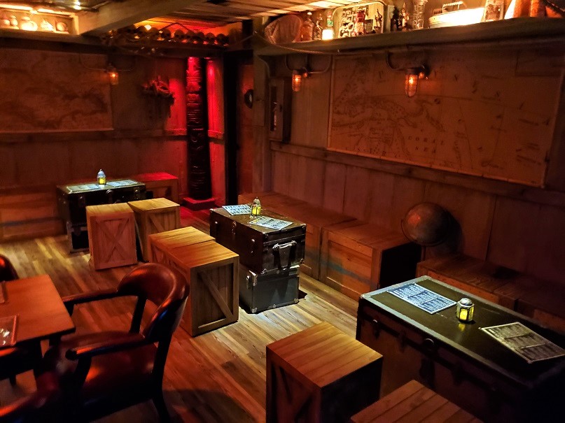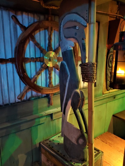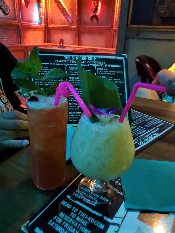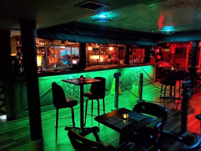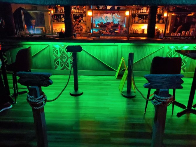 The Sinking Ship’s actual bar doesn’t have a place for patrons to sit around it. So that banter with bartenders is missing. I would have loved to have chatted with Benny some more. He truly was a large part of why I was so taken with Tiki-Ko on my first visit. That was the only thing I found fault with–no seating at the bar. I guess this helps prevent the spread of COVID and keeps the cocktails flowing. Oh, well. I’ll have to catch you another time, Benny.