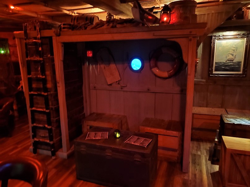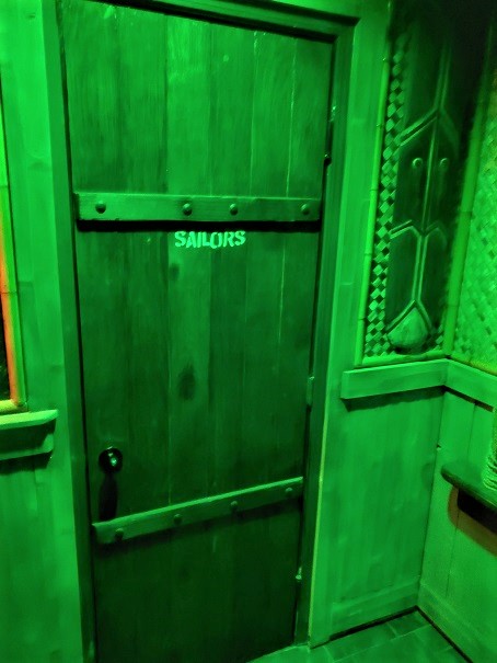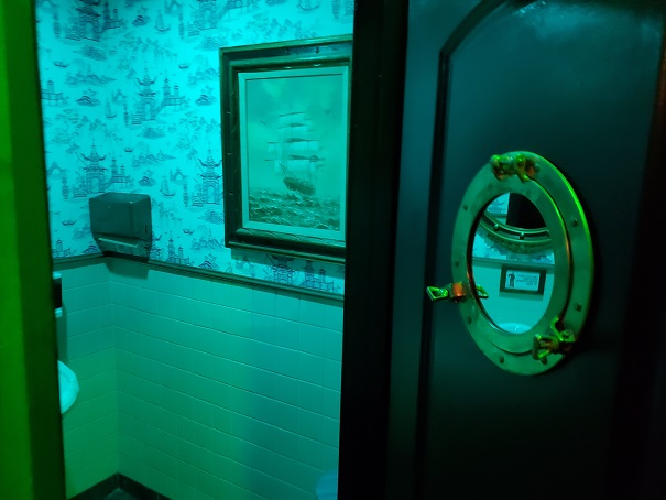At some point I needed to visit the “Sailors” room and unload my own rum barrel. Of course I took pictures in there as well. I dug the porthole-shaped mirror on the back of the door.