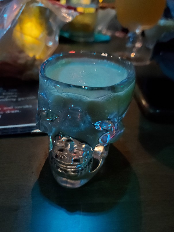 Not long before we left, Roy, the owner, came over with a tray. On it were four skull-shaped shot glasses. Because we had been having such a good time, he wanted to share something called a Kraken the Whip. Sooooo yummy. Creamy coconut, juicy pineapple, some mystery alcohol and 100% awesome. How nice. It was the perfect chaser to a perfect day.