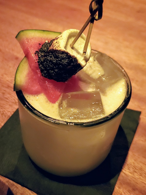 We pretended we didn’t notice we were being treated like second-class citizens and ordered our drinks. That’s something else I had noticed about Last Rites–and many o’ the modern tiki bars; while the drinks on my first visit had been tasty, the ones on successive trips had not been so great. Drinks that use too much spice or are drowning in bitters do not appeal to me. There is a fine line between excess and the perfect cocktail…and too often excess wins. I had learned this lesson a long while back…and it has greatly diminished items I’ll try on drink menus.