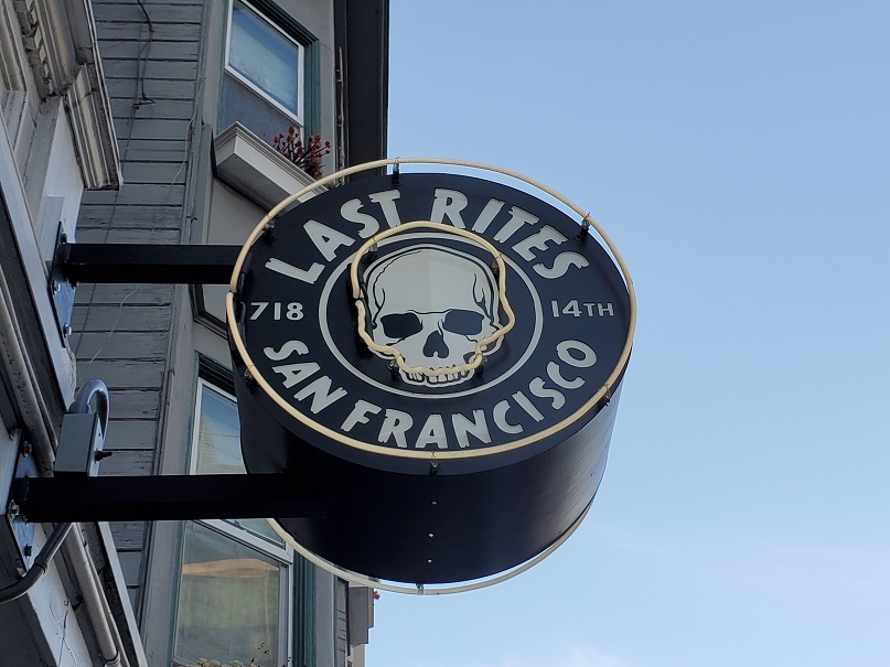 San Francisco is one of the tiki-lovers dream cities along the West Coast. The city boasts some top-notch Polynesian pubs as well as the oldest-known and longest-running tiki bar, Trad’r Sam. However, in early June of 2021, not all of the better bars were open. Smuggler’s Cove? Nope! The classic Tonga Room? Uh-uh. The wondrously spectacular Zombie Village? No… There were a few open bars to pick from (Trad’r Sam was open, but I was hoping for something a bit more than what it had to offer.), but to end my tiki fast, we went to Last Rites. (It was the closest one open to where we stopped for dinner after the Van Gogh show. Ha!)