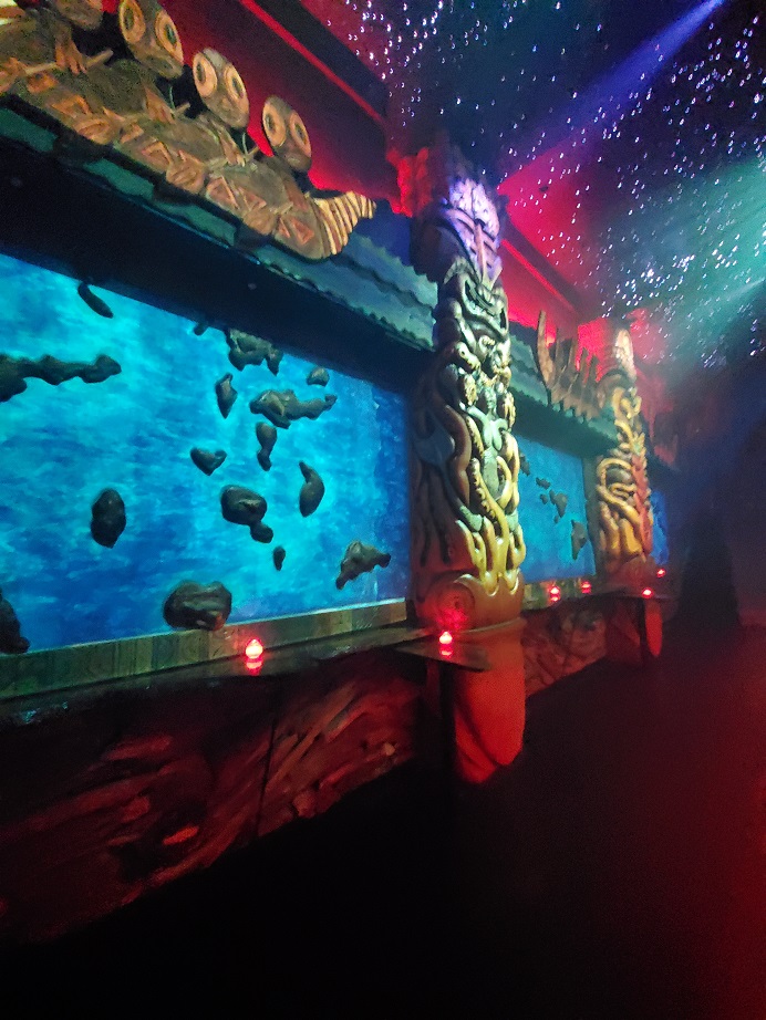 The place is just so well done. There is a second bar (covered in skulls) on an upper floor,but we didn’t get to go up. There is also a grotto-like area in the back, below that second-level bar.