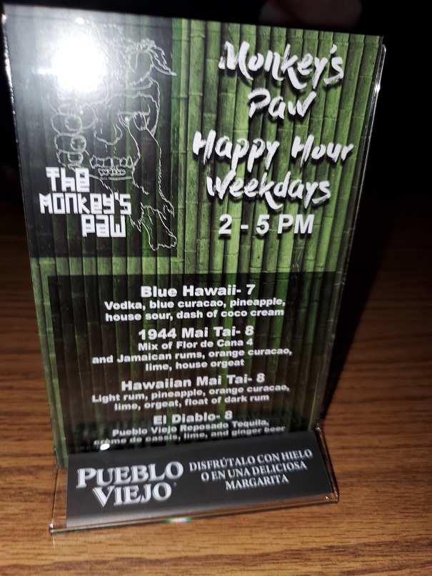 Where were we again? Springfield, Oregon? All I knew is that we were somewhere east of Eugene. I had looked up tiki spots in Oregon. Aside from the usual spots in Portland, there wasn’t much else…except for this new place called The Monkey’s Paw somewhere in the middle of the state. Maybe we could stop there on our way back from Whidbey Island in Washington on our way to Central California. But would it be worth a detour?