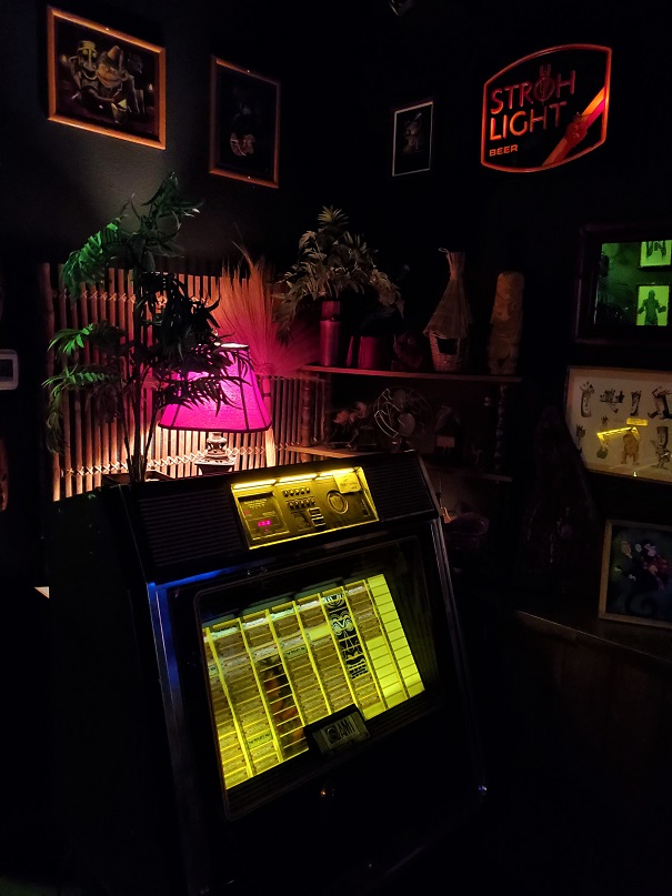 Just beyond the alcove with the restrooms was a jukebox. Oh no. It was a cool old juke, but did I really need to hear Hank Williams or Def Leopard or some hip hop while sipping cocktails in a tiki lounge? As I recall, some tiki-appropriate stuff was playing. That was a relief. At some point while standing there, the waiter passed by and I complimented him on the vintage jukebox. He thanked me, but said it was out of order. I hoped that it would stay permanently on the fritz and be nothing more than a vintage, decorative piece so that the exotica they were playing would become a permanent fixture.