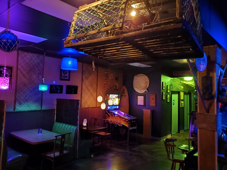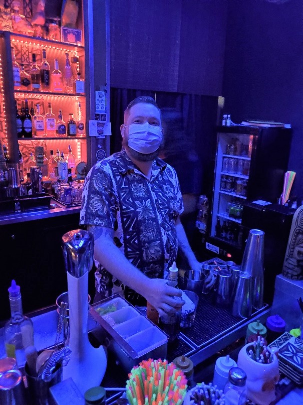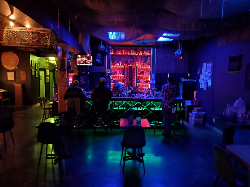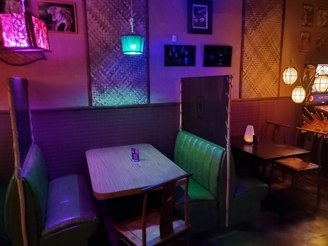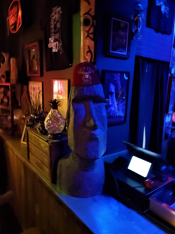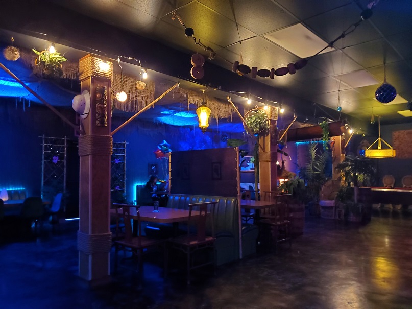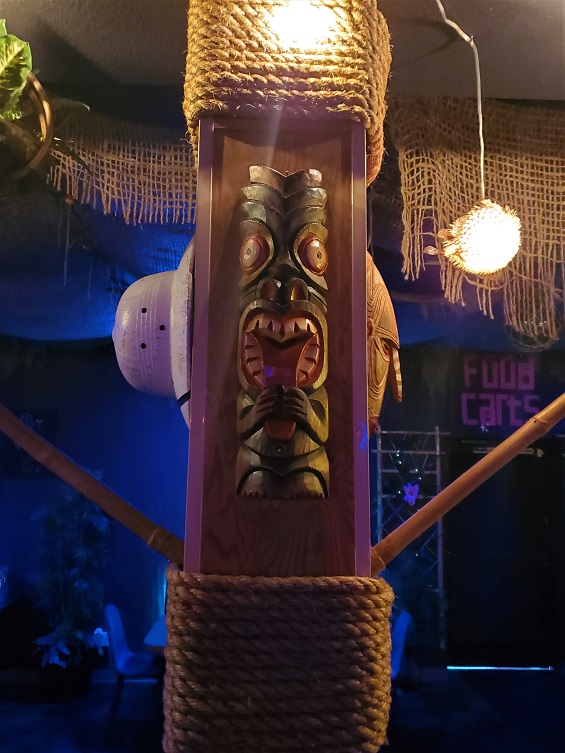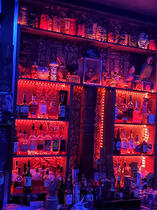 As I looked at the mugs, I asked Scott more questions. He said the bar had only been open a short time, having made its debut on Cinco de Mayo, 2021. When I asked why he and his partners had decided on opening a tiki bar, he said they wanted to do something fun. When it came out that I was from California, he wanted to know if I’d been to Smuggler’s Cove in San Francisco. I have. He was in awe of Smuggler’s Cove (and The Alibi and Hale Pele, both in Portland…and yes, I informed him after he asked, I had been to those as well).