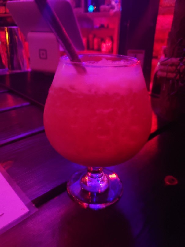 As the bartender expertly made our drinks, we chatted some more. We were complimenting him on the drinks and the bar in general. We learned that his name was Jason, and not only did they make their own mixes at Devil’s Reef, he was the one who had created and concocted the amazing cocktails.
