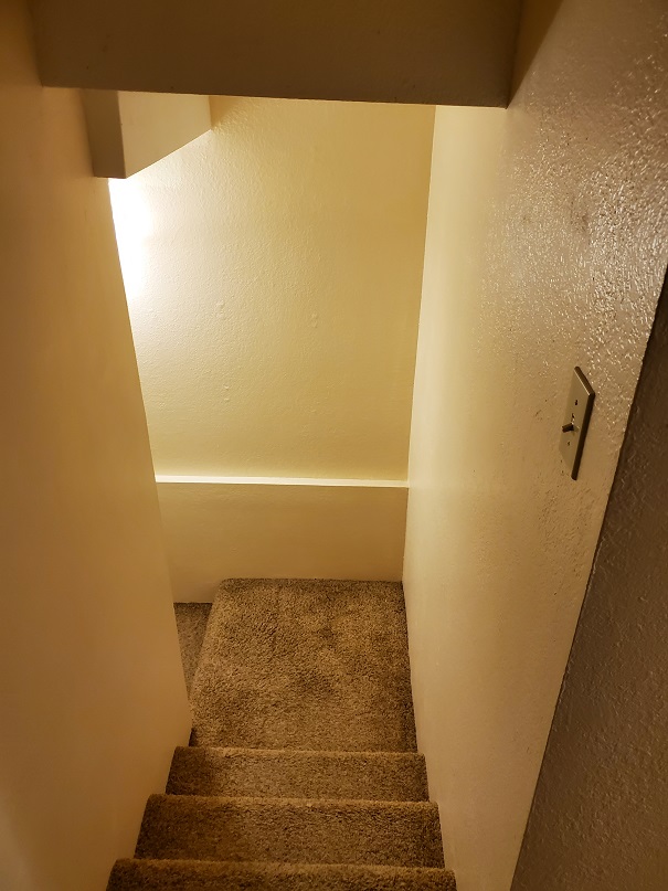 At the base of the stairs, there is a small hallway that leads to the garage. Directly under the stairs there is this little nook area. I hope to make that an extension of the bar as well. Since I want a spooky tiki bar, I’m hoping to set up my vintage A NIGHTMARE ON ELM STREET pinball machine as well as possibly more seating.