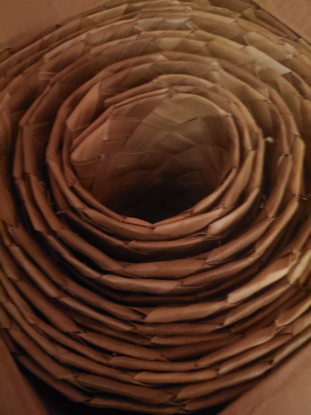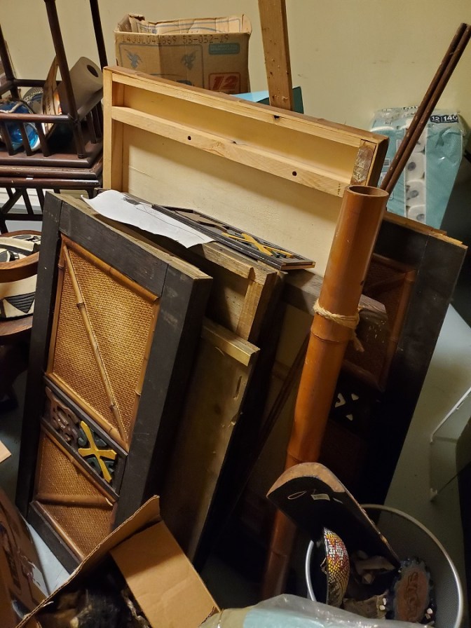 For part of the walls above the wainscotting, I’ve ordered some woven matting. I’ve also been searching for some cheap tapa cloth for other wall areas–but have not found any yet.