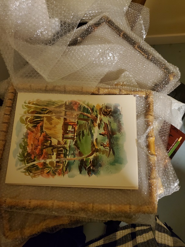 I’ve been going to town, getting way ahead of myself in this endeavor. I’ve already been buying picture frames, glass floats, and even a bamboo mat of some sort (that I have no idea what I’ll do with). I even picked up an old trunk to possibly use as a table.