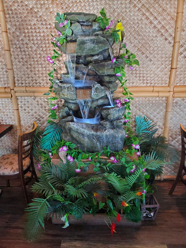 We stepped inside and were greeted by the host. I didn’t hear what he said and I was only vaguely aware that he was leading Erich away to a table. I couldn’t help it–I was just too distracted. I was ever so delightfully surprised by the tiki bar just to the left of the entrance that I had to snap a picture. Wow! It looked pretty nice. Maybe things wouldn’t be as lame as I expected?