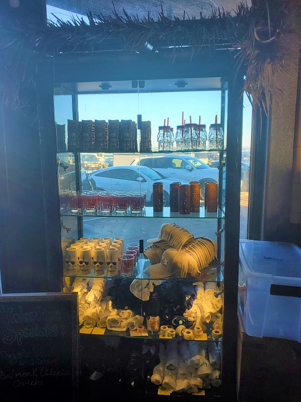 As if by magic, my mug was empty. Yes, my Bonzer had somehow disappeared. Erich was still sipping his drink, so I took the opportunity to snap some shots of the nifty looking patio area, the mini-souvenir stand at the host’s station and some of the other decor on display.