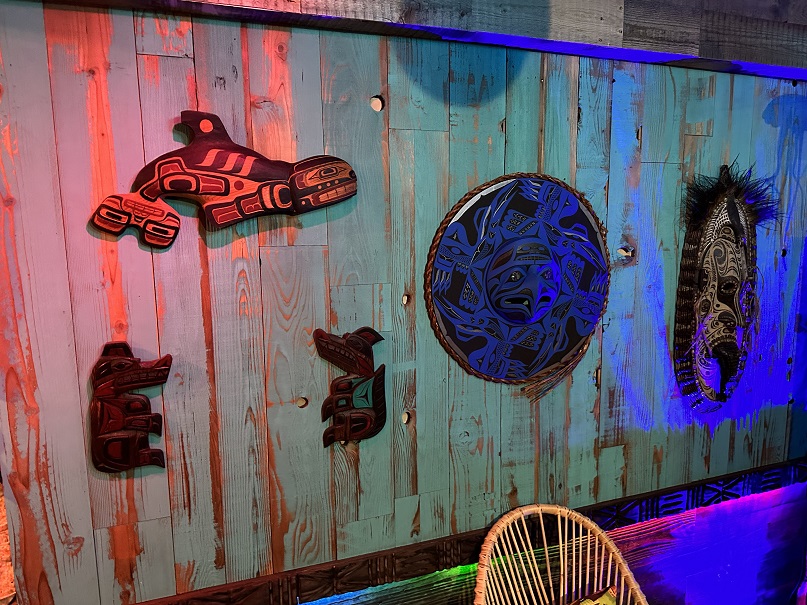 The wall art on one side seemed to have various tribal influences from around the world, but all worked together in the space.