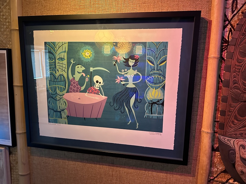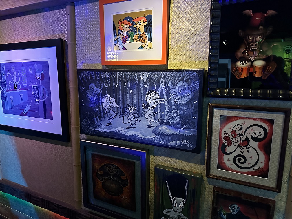 One of the main features of the front half of the bar is a wall with various pictures on it. They are flanked on either side by rare prints by the artist SHAG.