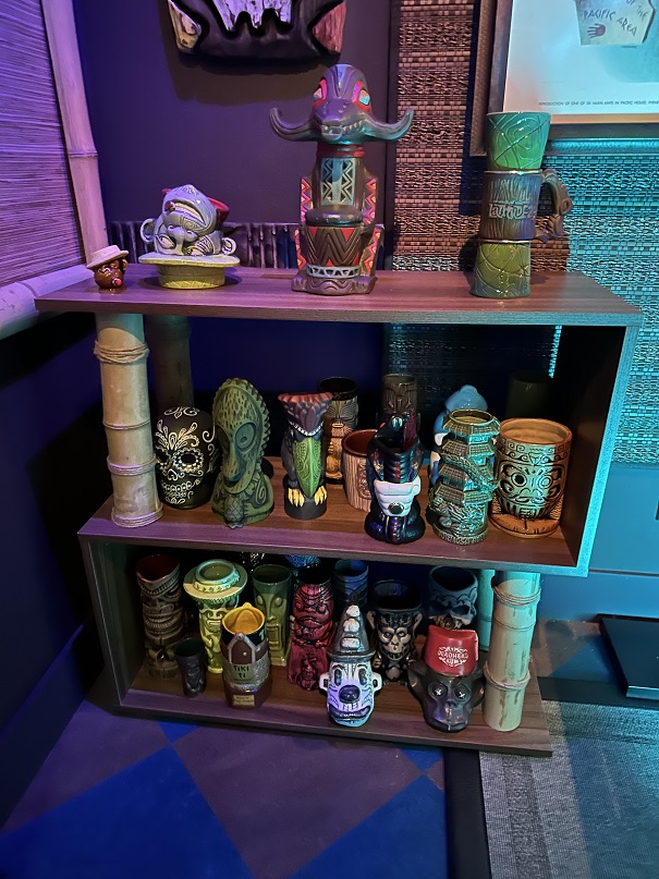 Although I didn’t get photos of all of it, Stephen did have a swanky-cool collection o’ tiki mugs.