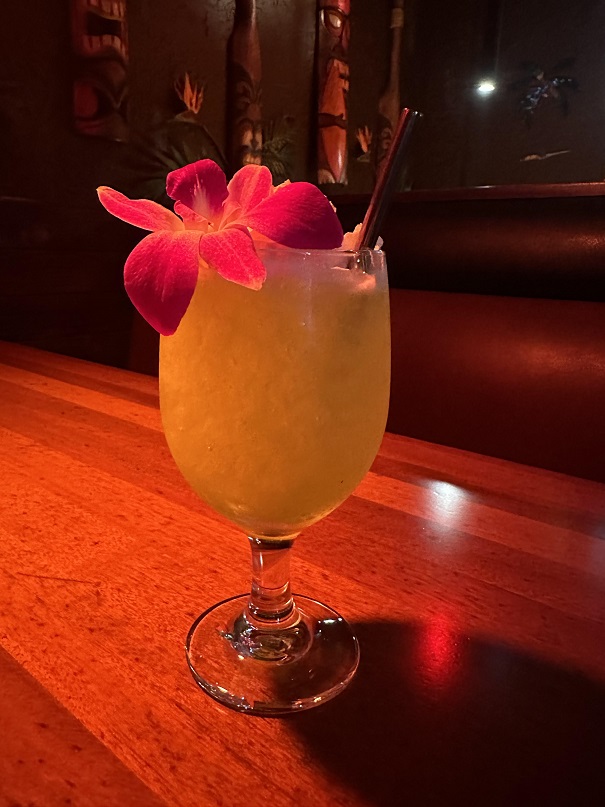 Although I’d finished my meal and cocktail, I wasn’t ready to leave. I decided to try something called a Sea Foam Swell, which contained coconut rum, banana liqueur, Midori, Pineapple juice and a whipped cream swell. While it wasn’t the best tiki cocktail ever, it was serviceable and tasty. It was my favorite of the two I tried.