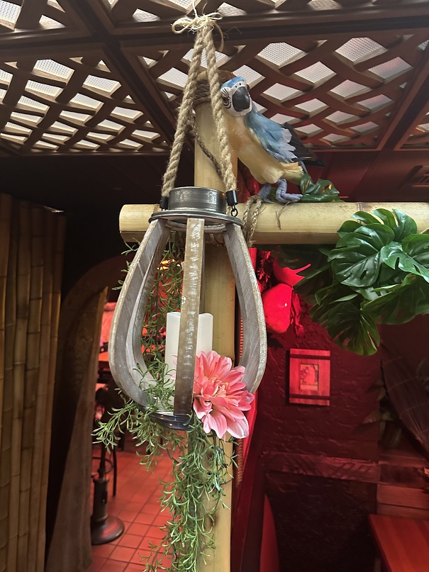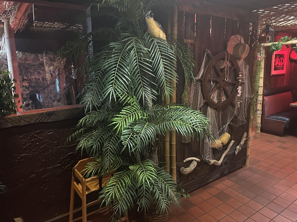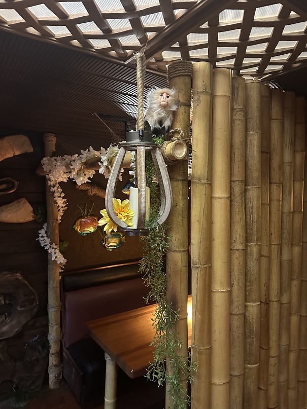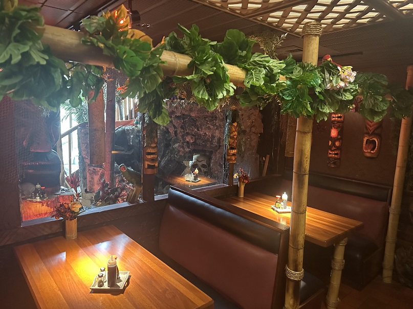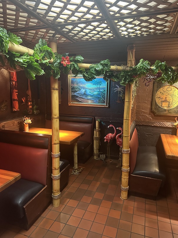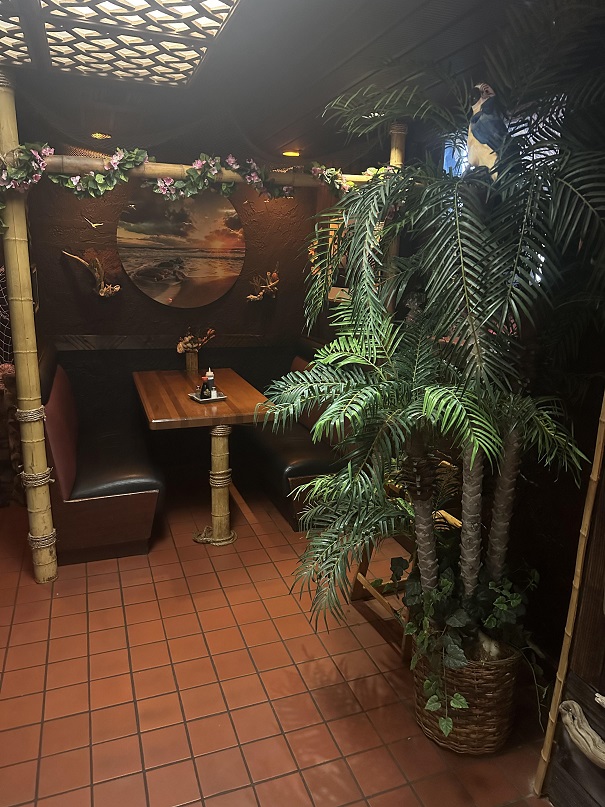 She led me in and told me I could sit anywhere I liked. I was amazed. There was no sign of that sterile, food court-looking dining room. Instead, I found myself walking into a surprise little tiki gem. I couldn’t stop staring. It was the complete opposite of what I was expecting to find.