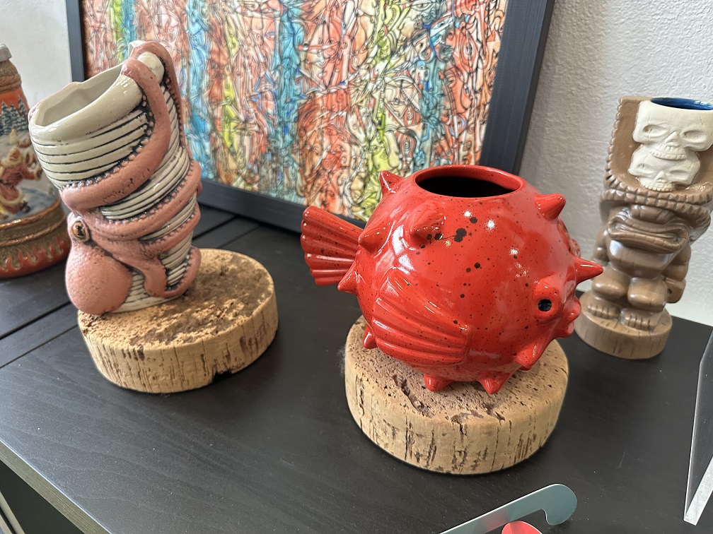 Deb told me that, since Munktiki started in early 2000, her husband and son had designed everything. She said that Paul had retired from the mug designing side of things, but Miles was still hands-on. (They now also utilize other artists.) While she did point out that she had done the paintings on the walls, she didn’t take any credit for any of the mugs. (I happen to know that Debba Debba did create some mugs, a certain one of which I hope to score some day…when I can afford it.)