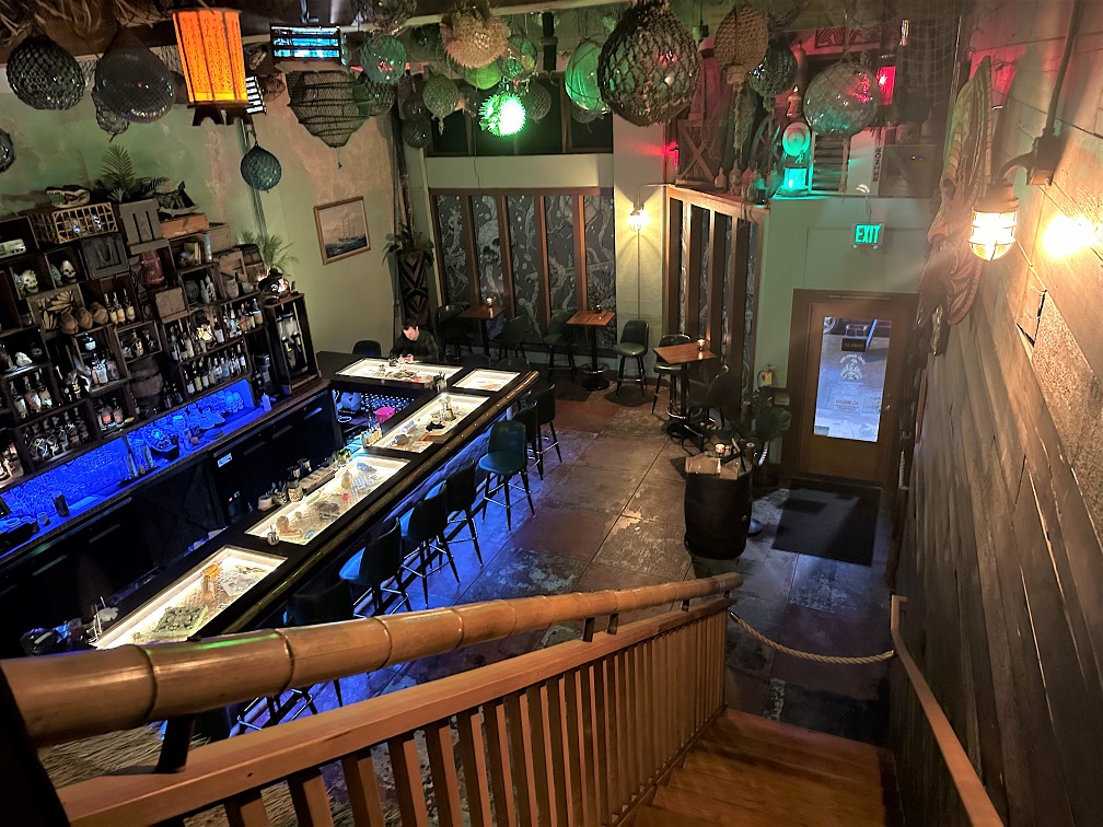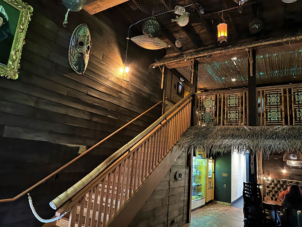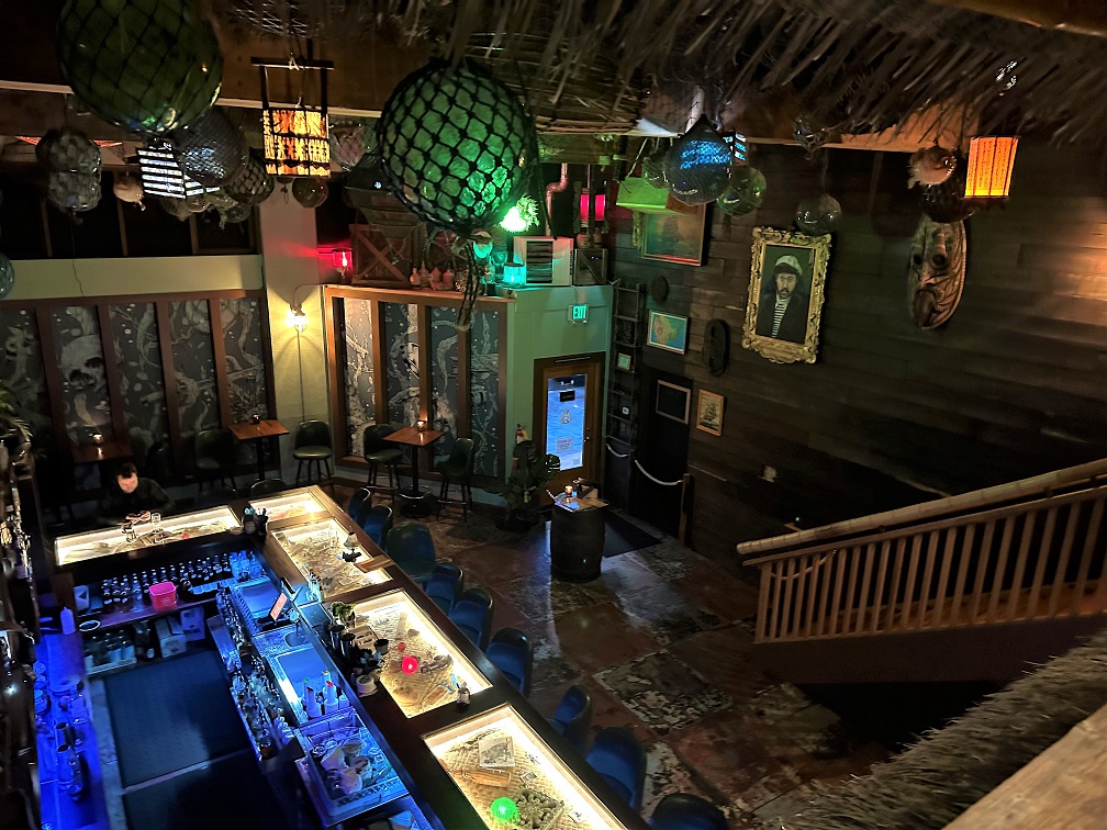 The view of the bar below was just amazing and really showed off just how tall the space is. It also provided a different perspective of the bar, revealing all of the tiki treasures hidden beneath the bar’s glass top.