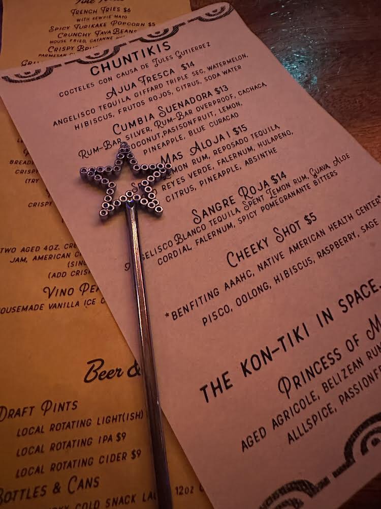 “Oh, I’m sorry,” he said. “I just know about these drinks.” He indicated the Chuntikis drink specials menu. The name Jules Gutierrez was credited for the “cocteles con causa” (“cocktails with a cause”).