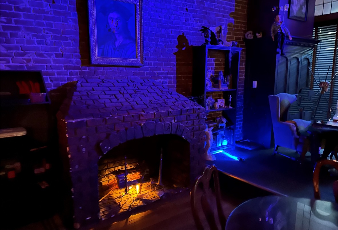 One of the rooms used in the escape room portion of the experience–taken before we started. (No photos were allowed during the experience!)